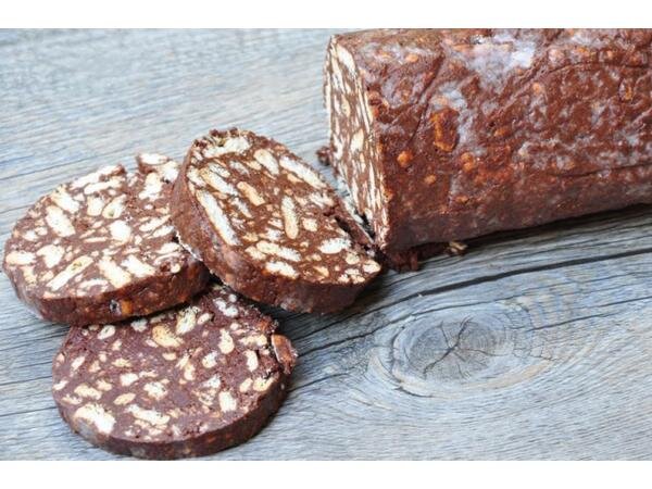 Торт ''Колбаска'' Для его приготовления надо подготовить: Сливочное масло: 250 гр, Какао: пол пачки,(я использую какао ''Золотой ярлык'') печенье: 500 гр, сгущёнка: 300 гр. ПРИГОТОВЛЕНИЕ: Напутствие: для приготовления сливочное масло должно быть комнатной температуры. 1. В ёмкости перемешать сливочное масло какао и сгущёнку. 2. В отдельной миске покрошить печенье, но без фанатизма чтобы не получилась пыль. 3. Хорошо смешать шоколадную массу и печенье. 4. Разложить массу по пакетам. 5. сформировать колбаски. 6. Оставить на ночь в морозилке. Можно подавать как к гостям, так и просто к чаю! Подписывайтесь!