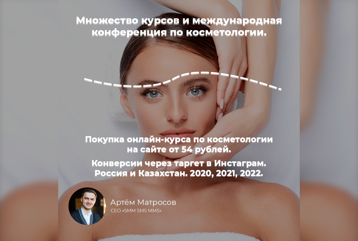Среди всего многообразия курсов в рекламу направлялись такие: ламинирование ресниц, косметические массажи, базовый курс косметик-эстетист, микронидлинг, международная онлайн-конференция косметологов и другие.