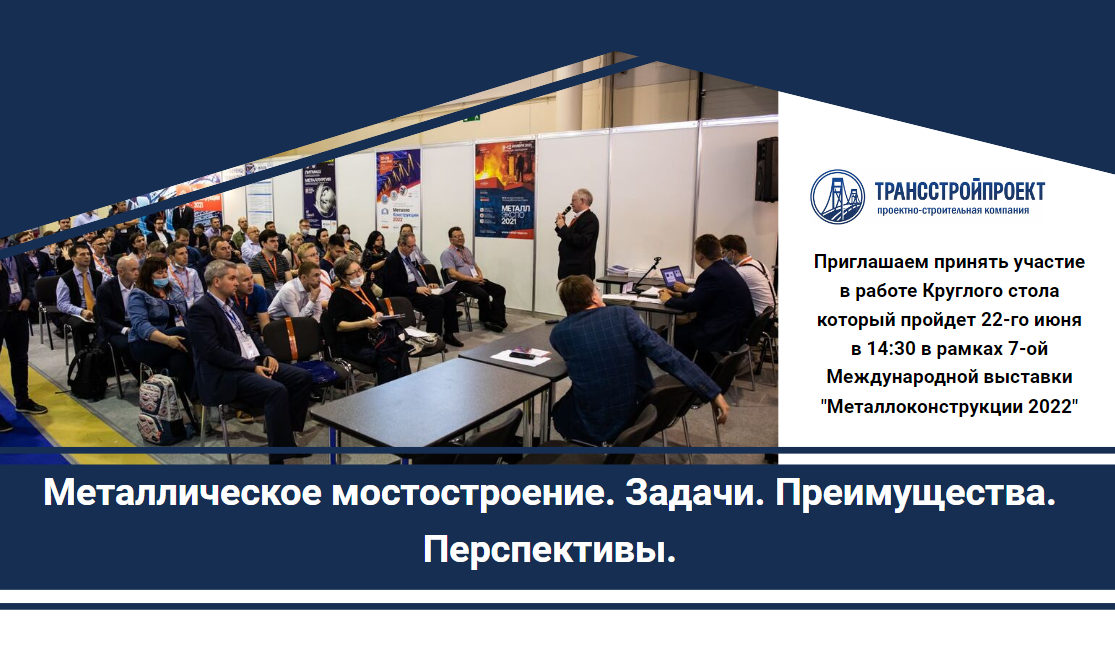 🔹Приглашаем вас принять участие в работе круглого стола «Современное металлическое мостостроение. Задачи. Преимущества. Перспективы», который пройдет 22-го июня в 14:30 в рамках 7-ой Международной выставки «Металлоконструкции’2022». ❗️ Посетив мероприятие, Вы получите возможность найти решения своих технических задач и коммерческих вопросов.⠀ 🔹К участию в мероприятии приглашены руководители и специалисты предприятий - производителей мостовых металлоконструкций, проектных институтов и компаний, монтажных организаций, а также поставщики металлургической продукции. 🔹На повестку дня будут вынесены актуальные вопросы и перспективы развития новых технологий в области проектирования и строительства металлических мостов.⠀ Разберем самые актуальные темы, а именно👇 - Текущая ситуация и современные направления развития мостостроения. - Проектирование мостовых металлоконструкций. BIM технологии в мостостроении. Проблемы и перспективы. - Оптимизация расходов на строительство. Новые технологии м