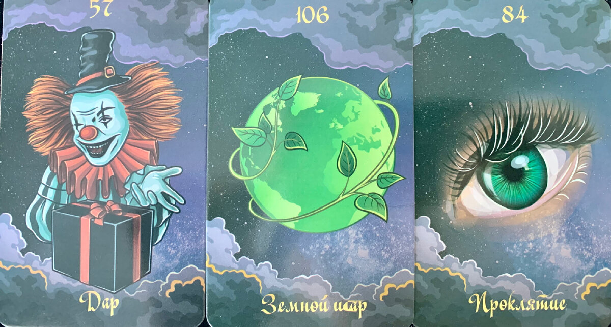 Здравствуйте, девочки! Благодарю всех за донаты, лайки, комментарии и подписку🌷🌷🌷 Сны и Явь, где грань между ними? Представьте героя своих грёз Начинаем Какой он видит Вас во сне? Дар, Земной шар и Проклятие Карта Дар положительна сразу и безоговорочно. Это про подарки и награды, про то, что очень приятно и радостно получить. Приятные сюрпризы, признание, всё идёт отлично. Я спрашивала про личные отношения, в этом ключе карта Дар про сексуальность. Эротические сны у него. Про Вас)) Несмотря на положительные трактовки карты, рисунок мне видится слегка зловещим, клоуны непредсказуемы, что там под маской? На этой карте клоун явно не добрый. Даже во сне ему хорошо с Вами, но запретно… Есть негативный подтекст. Рядом карта Земной шар, заземляемся) Подтверждает земную природу его снов, Вы там не переписываетесь точно. Всё по настоящему, секс, страсть, телесный контакт. Проклятие - просыпается и злится. На то, что снитесь? Или на то, что это всего лишь сон? Или что он запал на Вас и д