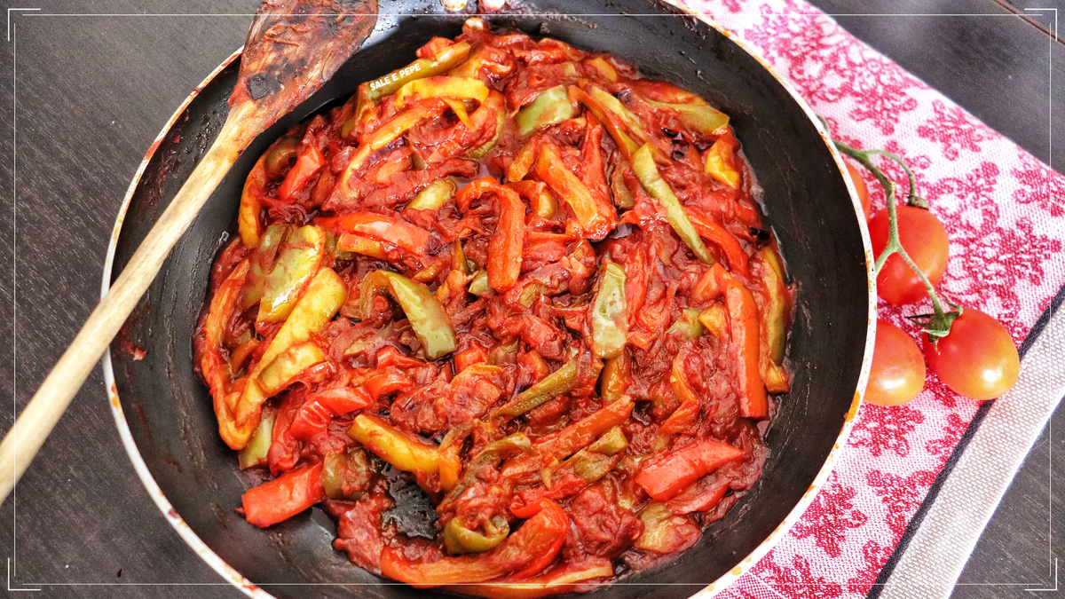 Сложность: легко Подготовка: 15 мин. Приготовление: 50 мин. Порции: 4 Стоимость: низкая Пеппероната — это очень вкусный летний гарнир, идеально подходящий к мясным или рыбным блюдам. В Италии рецепт пепперонаты варьируется из региона в регион, - иногда ее готовят с картофелем или свежими помидорами. Пеппероната хороша в любом виде, - горячем, теплом или холодном. Может быть подана не только в качестве гарнира, но в качестве топпинга брускетты, соуса к пасте или самостоятельного блюда! Ингредиенты: - 1 кг. сладкого перца - 400 гр. томатов в собственном соку - 2 зубчика чеснока - 400 гр. красного лука - оливковое масло, соль и перец по вкусу Приготовление: Приготовление пепперонаты я начинаю с нарезки лука на полукольца. Обжариваю его на оливковом масле на медленном огне около 15 мин. Где-то в середине приготовления отправляю к луку очищенные зубчики чеснока, перемешиваю и добавляю немного воды. Тем временем занимаюсь болгарскими перцами. Пеппероната особенно красиво смотрится, когда п