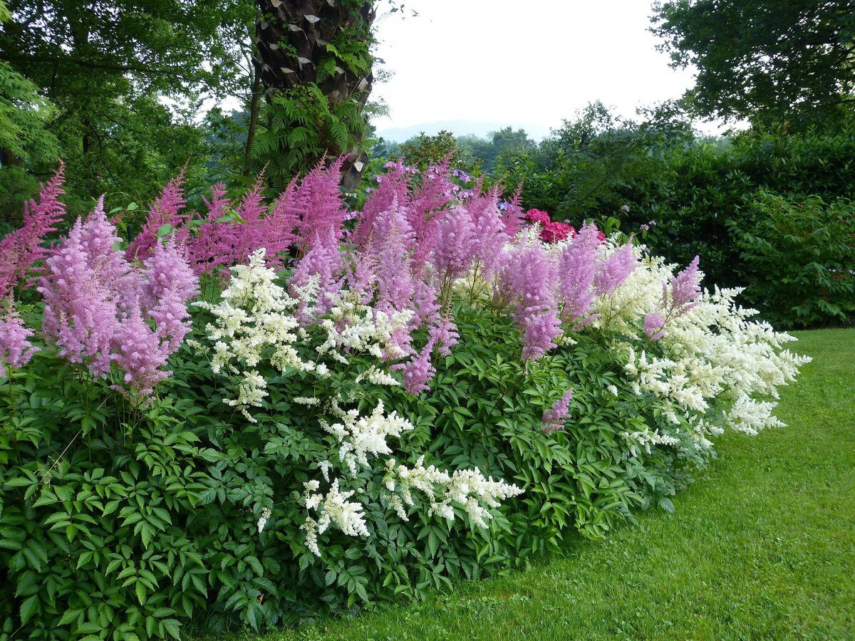 Это один из самых красивых декоративных многолетников, способный расти в тенистых местах. Растение украшает пространство красивыми и ароматными соцветиями. Кроме того, астильба сохраняет декоративность в течение всего сезона - с весны до глубокой осени, благодаря эффектной ажурной листве. В высоту растение может достигать от 50 см до 1,5 метров. Метельчатые соцветия у астильбы необыкновенно красивы, выглядят словно роскошные перья. Они имеют разнообразную окраску красного, розового, белого, фиолетового оттенков. Особенно красивы сорта астильбы с поникающими соцветиями. Как уже было сказано выше, астильбы предпочитают произрастать в тени. Можно высадить на слегка затенённом участке. Грунт должен быть плодородным, рыхлым и постоянно увлажнённым. Засуху астильба не выносит. Чем больше увлажнена почва, тем меньше вреда растению могут нанести попадающие лучи солнца. Астильбы требуют регулярных подкормок, больше они любят органические удобрения. Это растение довольно морозоустойчиво, мо