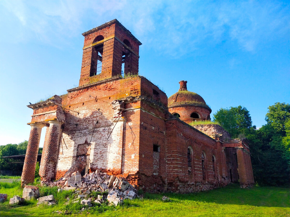 Храм случайно попался на глаза, в интернете были фото его в заброшенном виде, но издалека меня смутил новый купол. Все же потратила лишние 25 минут и свернула к нему. Как и ожидала, храм начали реставрировать, все закрыто, но мне удалось взглянуть на то, что происходит за закрытыми дверьми и окнами.