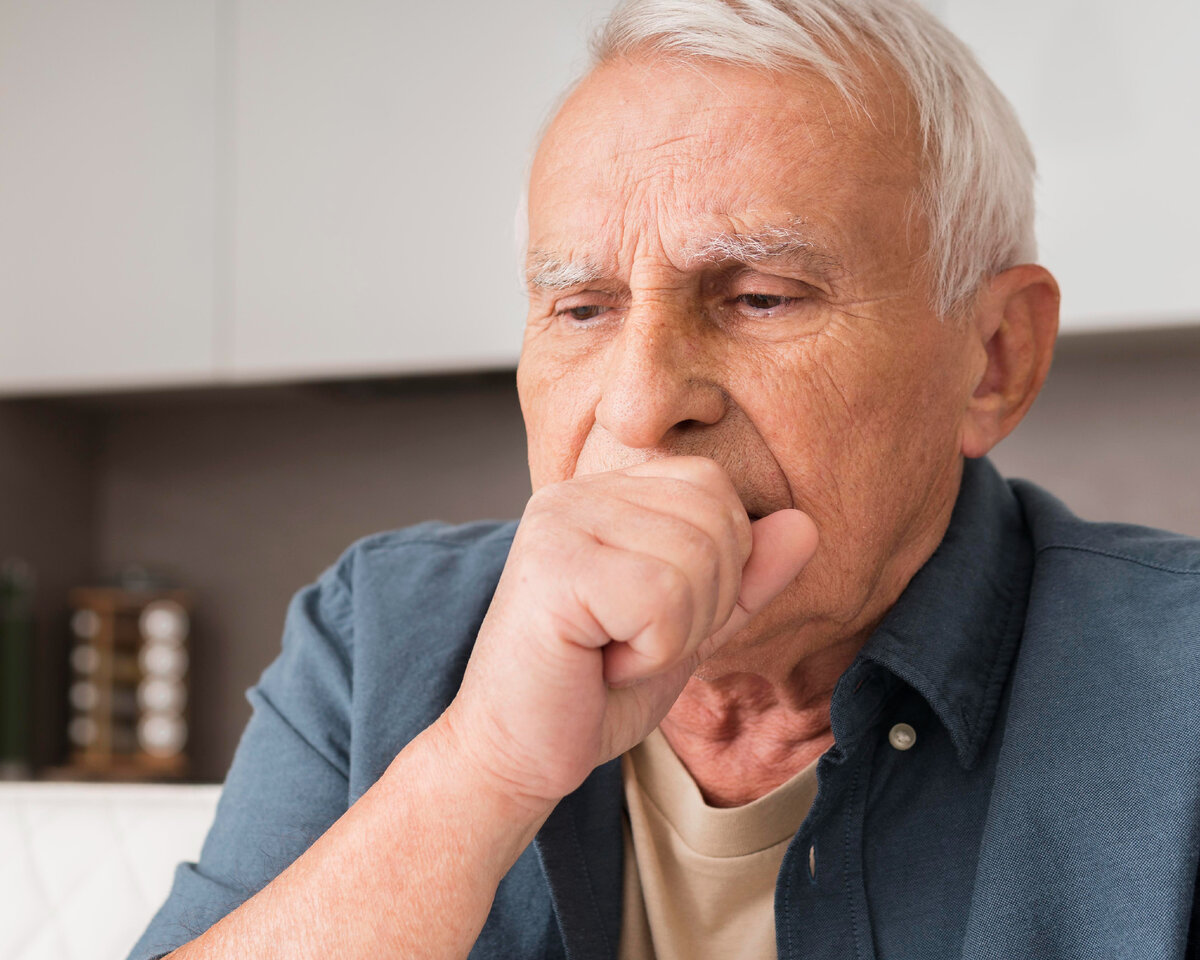 Кашель — это симптом, являющийся рефлексом при сокращении мышечной ткани дыхательной системы. Действие рефлекса выполняет очистительную функцию и выводит из бронхов слизь и скопление мокроты. У пожилых людей кашель — это частый симптом, особенно в возрасте старше 65 лет. Причинами кашля не всегда являются воспалительные состояния. Ведь возрастные изменения — это одна из причин появления кашля в старческом возрасте. Какие болезни могут спровоцировать кашель у пожилых людей? Причиной кашля в пожилом возрасте могут стать хронические заболевания бронхолегочной системы либо воспаление бронхов. Однако лечение не всегда приносит результат. А все потому, что в пожилом возрасте запускаются процессы старения организма. Ухудшаются метаболические функции, нарушается нормальная деятельность органов и систем. Дыхательные мышцы также становятся слабыми. Наблюдается атрофический процесс в ворсинках, расположенных на поверхности бронхов. При этом синтез слизи усиливается. Поэтому мокрота начинает задер