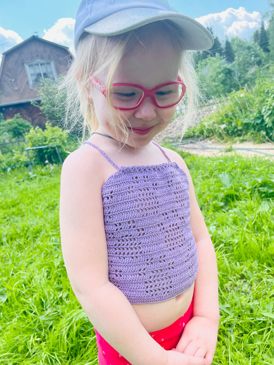 Как я уже писала ранее, мой мастер-класс на #cactus_top уже в продаже, а пока я работала над ним, связался ещё такой же и для младшенькой моей модели Лиза просила с кисами, но так как размер топа всего ничего, влезла бы только одна или полторы кисы😁 Поэтому мы с ней решили, что достаточно просто кошачих лапок или следов))) Ребятёнок доволен! А это самое главное! Заставить мою младшую дочь позировать невозможно, поэтому фотки как есть😁 В планах теперь шортики для комплекта, но не такие «дырявые». Девочки очень ждут) А у вас какие планы на летнее вязание? Удаётся уделить время клубочкам? Купить МК можно по здесь https://vk.com/wall-174018335_1240 а если хотите просто поддержать мой канал, то ставьте 👍