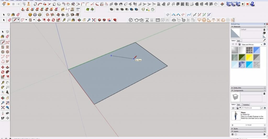 В этом уроке мы научим вас рисовать 2D в Sketchup, вернувшись к основам. Это может показаться простым, но 2D-рисование - это основополагающий принцип для всего, что вы делаете в Sketchup. Прежде чем приступить к 3D-моделированию, важно найти время, чтобы ознакомиться с инструментами 2D-рисования, чтобы вы могли создавать лучшую геометрию в своих конечных моделях. Как только вы освоитесь с основными инструментами, вы сможете перейти к более сложным моделям и чертежам. Давайте начнем! Начинаем рисовать 2D в Sketchup Нарисуйте прямоугольник. Щелкните на инструменте прямоугольник и нарисуйте прямоугольник из исходной точки. Одна из распространенных ошибок, которые люди допускают при использовании Sketchup, - это рисование по разным осям. Чтобы избежать этого, убедитесь, что при наведении курсора мыши на прямоугольник инструмент показывает надпись “на лицевой стороне”. Если вы соедините любые две линии поперек нарисованного вами прямоугольника, они всегда будут находиться в одной плоскости