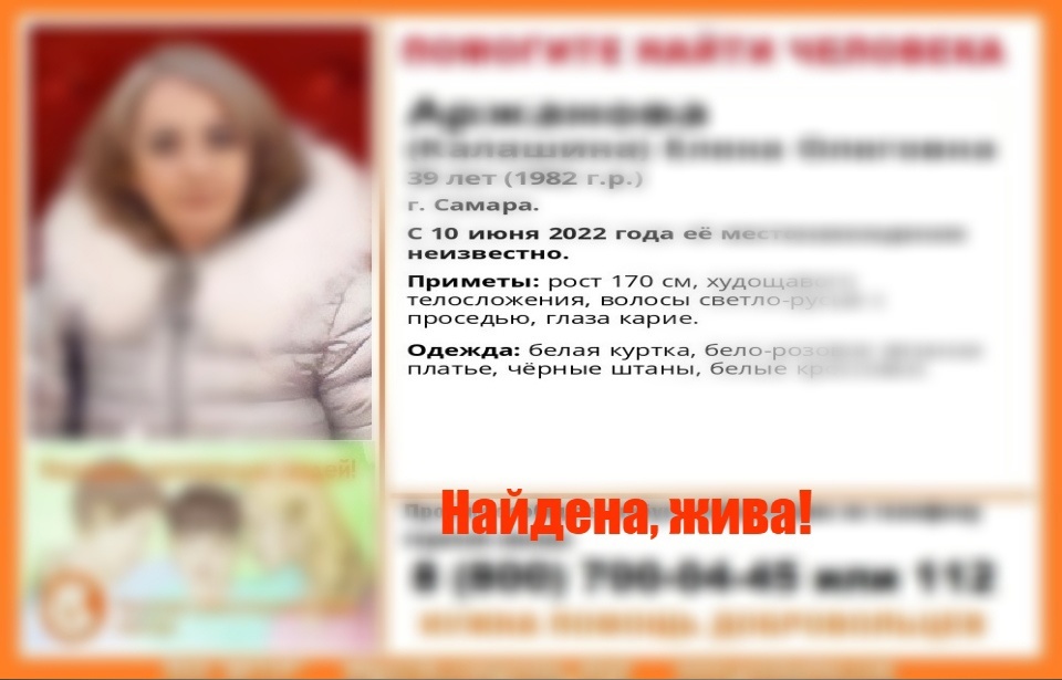 Внимание! Помогите найти человека!Пропала #Аржанова (Калашина) Елена Олеговна , 39 лет #СамараС 10 июня 2022 года её местонахождение неизвестно.Всем, кто располагает сведениями о пропавшим просьба писать https://vk.com/wall-46816665_38581