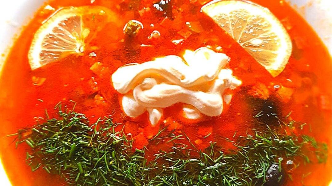 Солянка - смачна страва з декілька видів м`яса та ковбас. Пікантність надають маслини, лимончік, огірок та зелень. #літнєменю