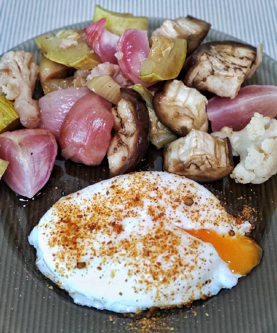 Хорошо пашотец положить на белый хлеб с авокадами и форелями, но я чаще использую более диетическую пару – овощи в духовке. А яйцо посыпаю сванской солью.