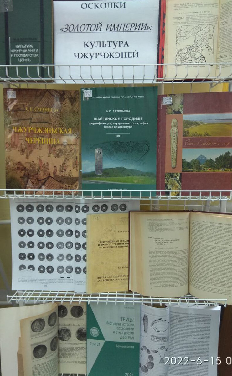 В поддержку проекта отделение ЦНБ ДВО РАН при ИИАЭ подготовило мультимедийную выставку, которая включает в себя:– тематическую выставку «Осколки «Золотой империи: культура чжурчжэней»;– презентацию Н.Г. Артемьевой (канд. ист. наук, зав. сектором средневековой археологии ИИАЭ ДВО РАН), которая рассказывает об одном из археологических памятников Дальнего Востока – «Шайгинское городище – эталонный памятник Чжурчжэньской культуры».