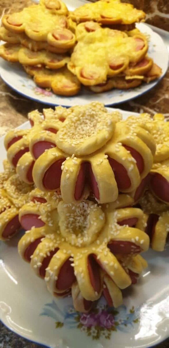 Завернуть сосиски в тесто, смазать яйцом с молоком, посыпать кунжутом или сыром.
