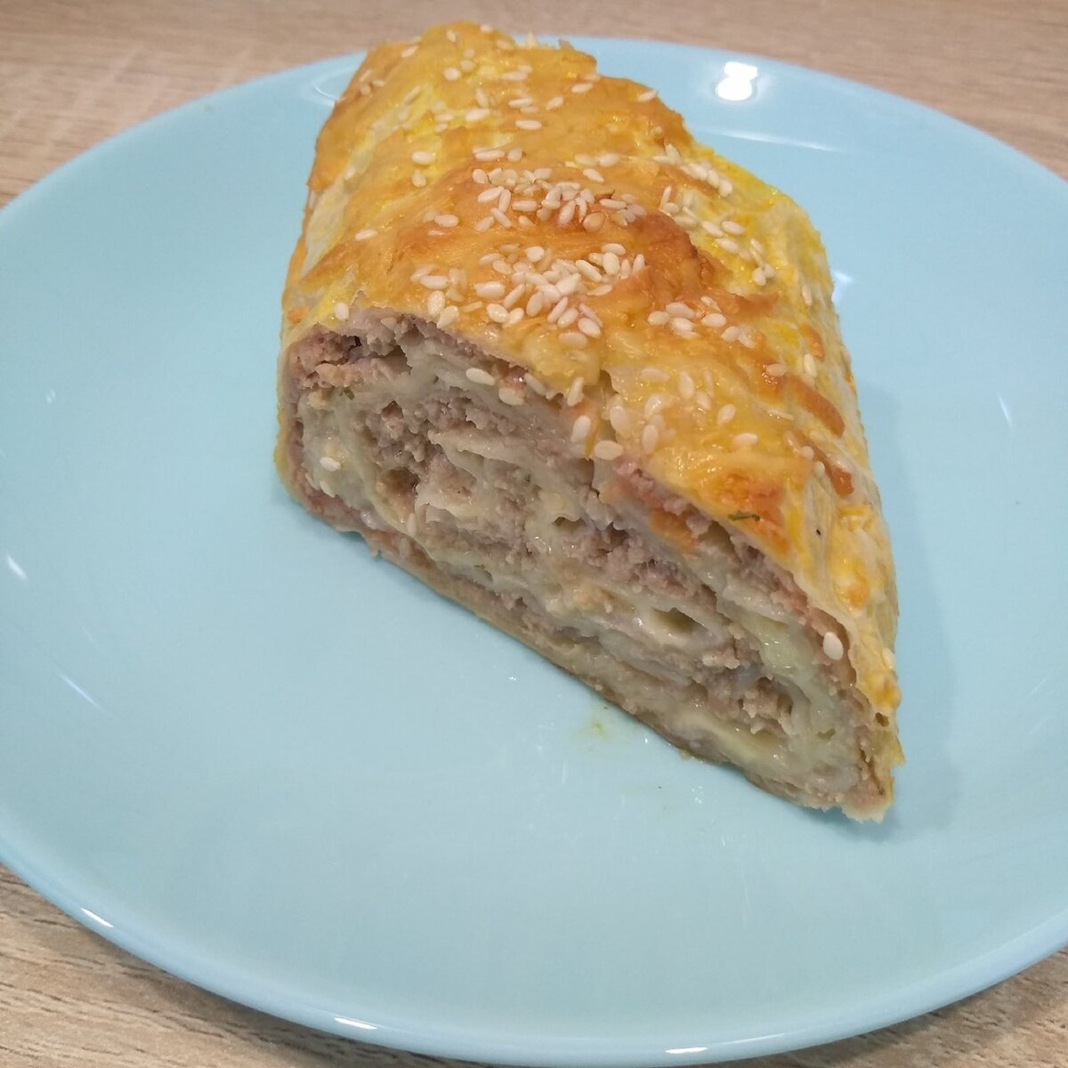 Смотрели "Универ"? Помните бухлаваш? Сегодня хочу показать как он готовится))) Очень простое блюдо из лаваша фарша и сыра. За 30 минут вкусный ужин. Ингредиенты: Лаваш тонкий 2 листа Фарш 500 грамм Сыр 200 грамм Яйцо 1 шт. Лук 1 шт Помидор 1 шт Вода 50 мл зелень по вкусу ( у меня укроп) соль специи по вкусу кунжут по желанию Приготовление: Фарш, белок от яйца (желток оставить для смазывания), специи, лук порезанный мелко, воду, смешать в миске. Вода дает сочность и фарш легче распределяется по лавашу. Первый лист лаваша равномерно покрыть фаршем. Посыпать порезанными помидорами. Сверху положить второй лист лаваша. Натереть сыр и посыпать зеленью. Скрутить в рулет. Старайтесь скручивать не туго а то лопнет. Положить рулет на противень, смазать желтком, посыпать сыром и кунжутом. Выпекать при 200 град. 30-35 минут. Ароматно, вкусно, сочно. Попробуйте, вам понравится. Спасибо что заглянули в гости. Подпишитесь чтобы не пропустить самое интересное.