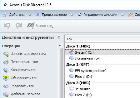 Acronis.Disk.Director.v12.5.0.163 - программа для управления дисками и разделами, позволяющая создавать, изменять размер, переносить и объединять разделы без потери данных. Имеющая в своем арсенале набор различных типов дисковых операций, программа помогает пользователям легко реструктурировать свои жесткие диски, в частности, путем создания, изменения размеров, перемещения, копирования, объединения и разделения томов. К вашим услугам очередь ожидания по выбранным заданиям, которые будут выполнены все подряд с согласия пользователя. Кроме того, встроенный модуль, названный Acronis Recovery Expert, делает попытки восстановить удаленные тома, из-за которых не загружается операционная система. Acronis Recovery Expert - специальный компонент, разработанный для полного восстановления удаленных томов, особенно если ОС перестала загружаться. У него есть автоматический режим, который идентифицирует все жесткие диски, подключенные к ПК. В тех случаях, когда он перестает работать, для выбора сво