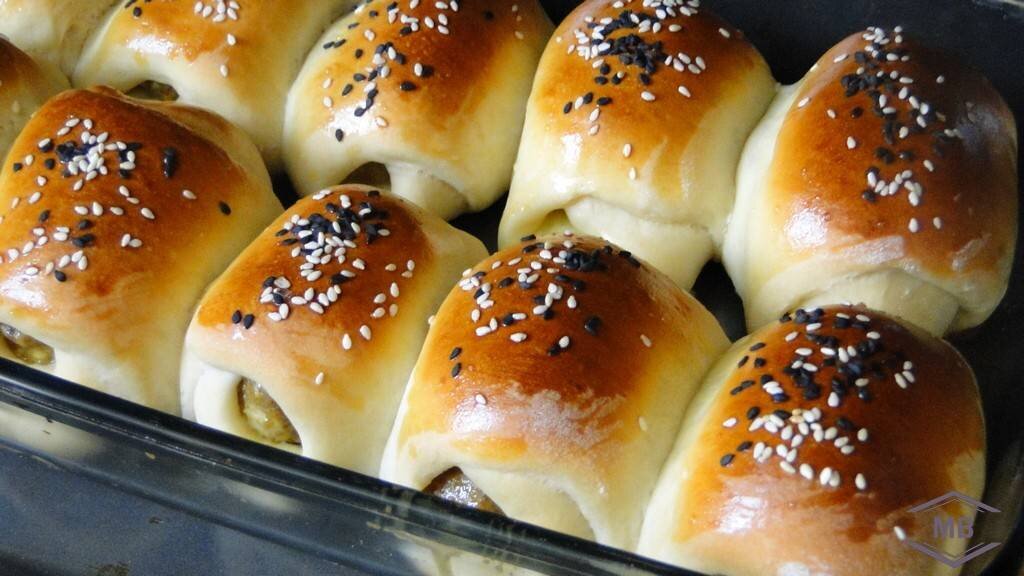 Перекладываем котлеты в тесте в форму для запекания, предварительно смазанную растительным маслом. Ставим в тёплое место на полчаса. Затем смазываем заготовки яичным желтком, слегка взбитым с чайной ложкой молока. Можно посыпать булочки кунжутом. Выпекаем в духовке при 180 градусах полчаса.