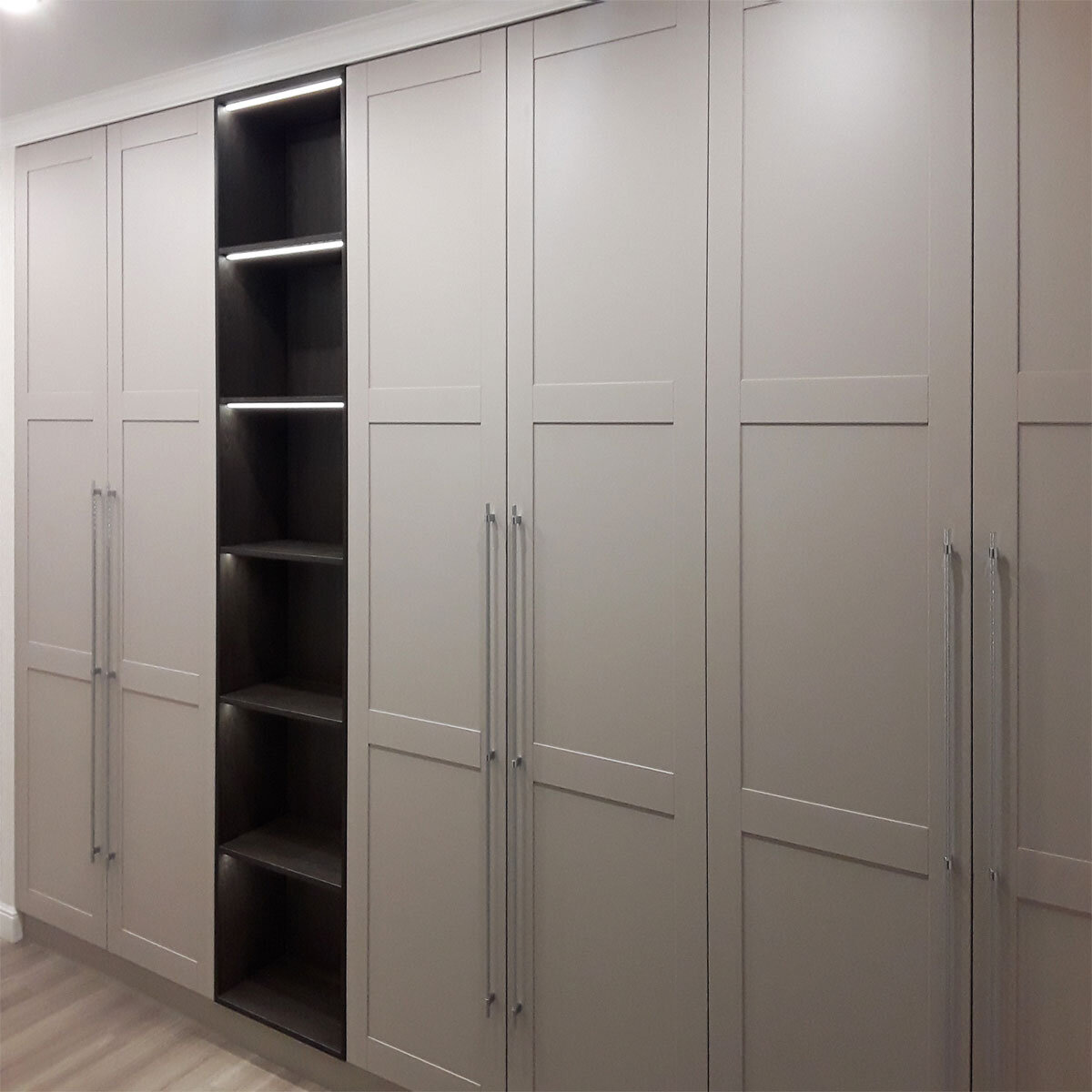 Наверняка, уважаемые читатели, вы заметили, что мы часто приглашаем вас в салоны Kardinal. И это не случайно! Во-первых, там можно купить образец с приличной скидкой, но, что ещё лучше - на основе образца шкафа можно создать свою уникальную мебель. Как? Покажем на примере нашего нового проекта. Вот салонный образец: однотонные рамочные фасады, секция для наружного хранения с подсветкой Наполнение включает в себя всё, что в принципе может пригодиться для эксплуатации А вот теперь давайте посмотрим, как можно адаптировать салонный образец под нужды владелицы! Шкаф увеличился на несколько секций, рамочные фасады стали светлыми для полной гармонии с оформлением коридора. А вот секция с полками стала, наоборот, тёмной А теперь - самое интересное: в наполнении шкафа появилась отдельная секция для гладильной доски и комнатной стремянки А за открытой секцией с открытыми полками появилось дополнительное место для хранения Обратите внимание, что задняя стенка не сплошная: таким образом можно сэк