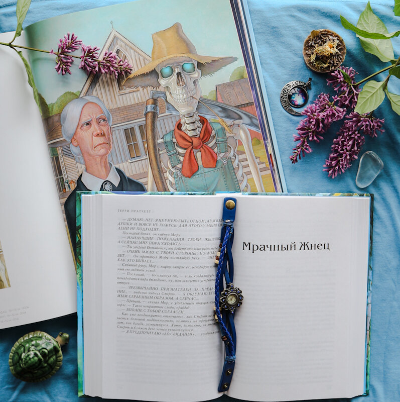 👨🌾"- ВИДИШЬ, У МЕНЯ ЕСТЬ ВРЕМЯ. НАКОНЕЦ-ТО У МЕНЯ ЕСТЬ ВРЕМЯ! - А теперь, когда оно у тебя появилось, что ты с ним будешь делать? - БУДУ ЕГО ТРАТИТЬ".👨🌾 👨🌾"ГОСПОДИН, НА ЧТО ОСТАЕТСЯ НАДЕЯТЬСЯ УРОЖАЮ, КАК НЕ НА ЛЮБОВЬ ЖНЕЦА?👨🌾 Вот так всегда! Ишачешь на работе, как проклятый, выполняешь ответственно свои поручения, а потом...оп!... летишь от вышестоящего пенделя на пенсию. И как-то внезапно приходит понимание, что жизни нормально так и не вкусил, многого не попробовал, а времени на всё почти и не осталось. Так случилось и со Смертью - с работы выпнули и теперь он тоже смертен, а часики-то тикают! И бывший Жнец без отработки и передачи дел быстро и счастливо сваливает на деревню бабушке! Не своей! В это время в Анк-Морпорке начинают происходить весьма интересные вещи - старый волшебник все никак не может умереть, его коллеги всё никак не могут смириться с его несмертью, а в городе от переизбытка живой силы начинают разгуливать костюмы за 7 долларов... Это было душевно,