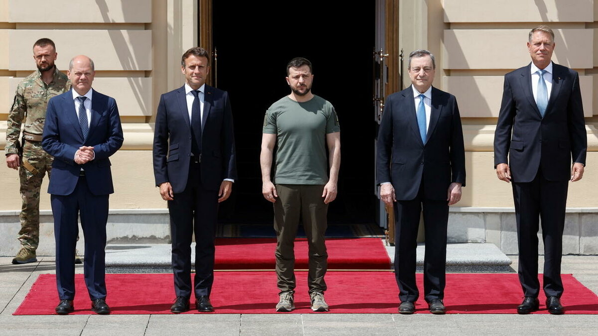 - Канцлер Германии Олаф Шольц, президент Франции Эмманюэль Макрон и премьер-министр Италии Марио Драги в ходе визита в Киев и встречи с лидером Украины Владимиром Зеленским поддержали предоставление стране статуса кандидата на вступление в ЕС.