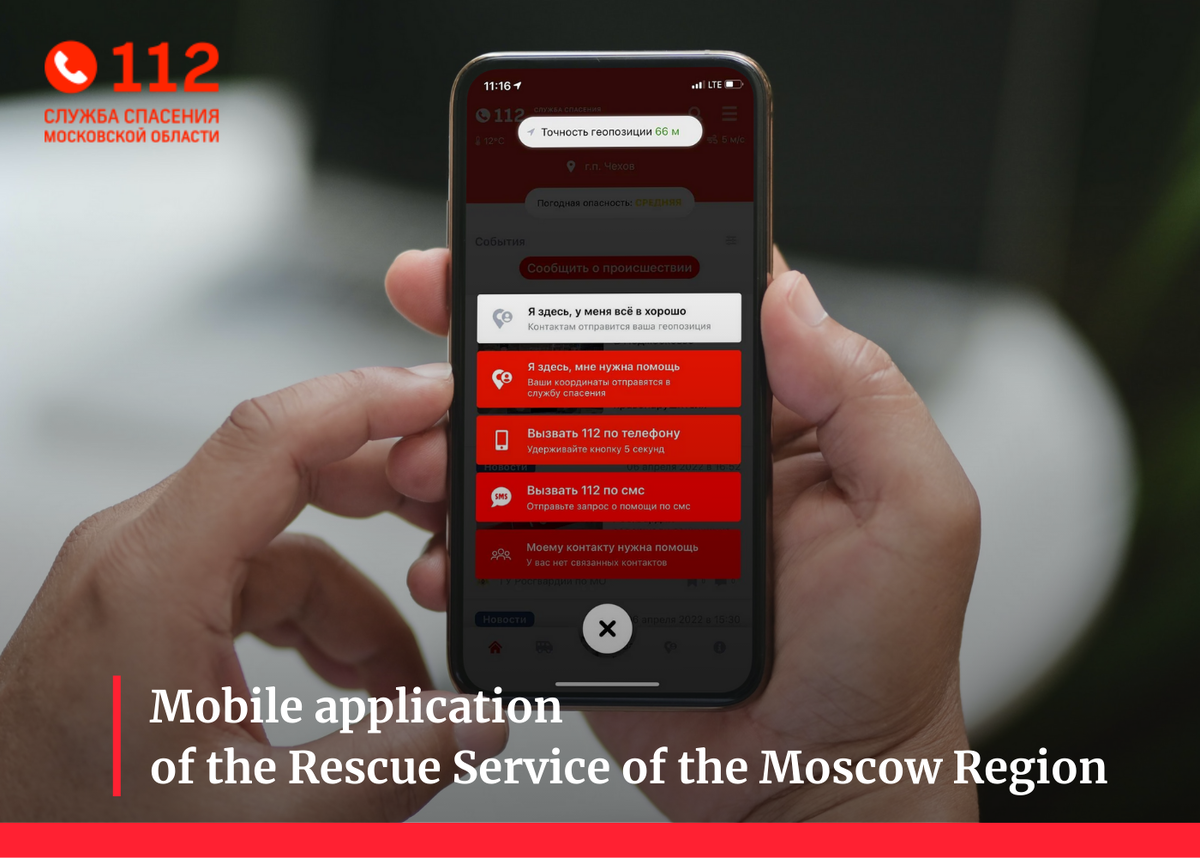 In the mobile application of the Rescue Service of the Moscow Region, one can ask for help from emergency services by pressing a single button. With the Emergency Button 112 one can: - Send their loved ones information about their location by clicking on "I'm here, I'm fine"; - Send emergency services a message "I'm here, I need help"; - Call “112” by phone; - Send a text message to “112”; - Ask their loved ones for help. Download for free the mobile application of System-112 of the Moscow Region: App Store: https://apps.apple.com/ru/app/112-mo/id1230002615 Google Play: https://play.google.com/store/apps/details?id=ru.mosreg.mo112 #system112 #112MO #security #rescue