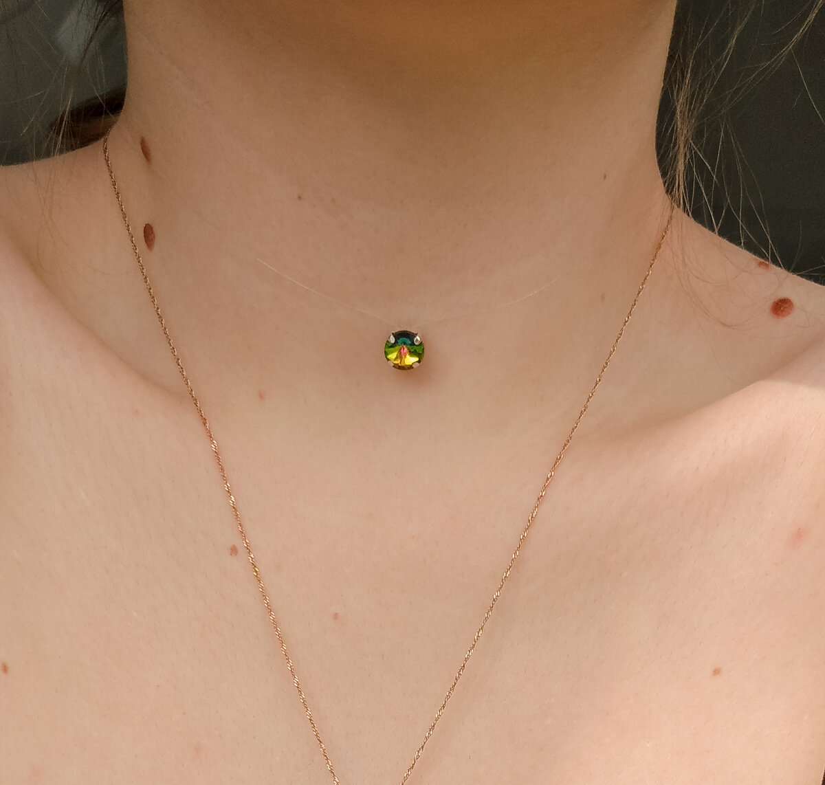 Минималистично, но не менее красиво. Этот аксессуар подойдет каждой девушке: любой цвет кожи, волос и глаз, любая одежда, стиль и комплекция — все это прекрасно сочетается с этим необычайно простым украшением. Какие еще достоинства есть у камушка на леске? 💎Минималистичный стиль украшения позволяет миксовать его с другими ювелирными изделиями. 💎Кулон-невидимка — универсальное украшение: вы можете надеть его под абсолютно любую одежду. 💎Небольшой камушек, спускающийся в ложбинку под шеей, добавит женственности любой представительнице прекрасного пола. Если вы стремитесь подчеркнуть свою женскую сущность, аккуратное украшение на леске будет замечательным способом это сделать. 💎Возможность подобрать любой размер и цвет камушка. Такой, что будет по нраву именно вам! #украшенияручнойработы #колье #кулонневидимка #кулонналеске #кольенашею #кольеналеске