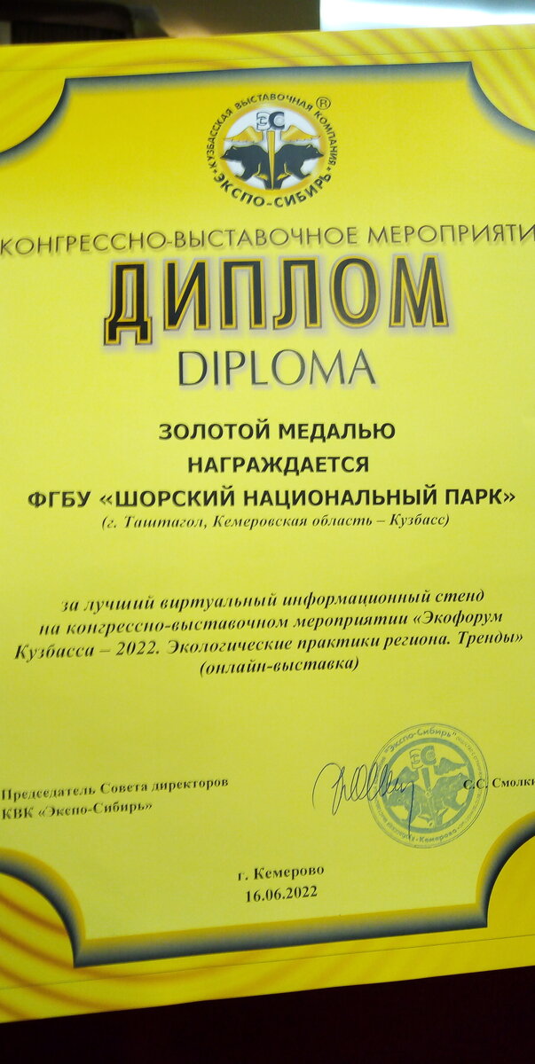 Виртуальный информационный стенд Шорского национального парка награжден золотой медалью.
