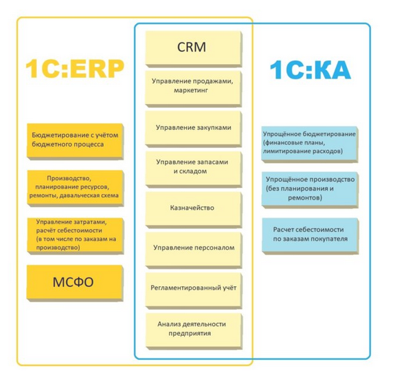 Одинаково эффективно применение ЕРП и КА, однако в УНФ по решаемым задачам представлен или минимальный набор функционала, или не представлен вовсе. А в ЕРП и КА возможно: