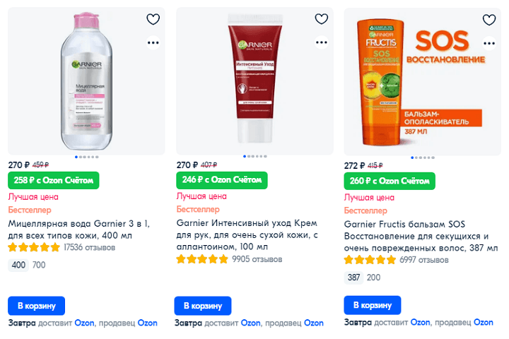 В OZON стартовала распродажа средств и товаров для красоты и ухода от Garnier и L’Oreal (671 товар). Как обычно, изначальные цены завышены, но итоговая цена со скидкой ниже рынка на 15-20%.