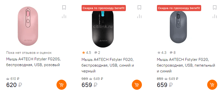 На 4 мышки из 9 действует промокод BENEFIT, дающий дополнительную 10% скидку.