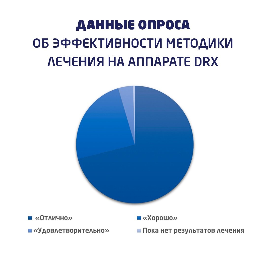 Будет ли результат от лечения на DRX? Делимся результатами опроса наших пациентов - листайте карусель. Мы можем долго рассказывать об эффективности методики лечения на аппарате DRX. Но что может быть лучше, чем цифры, которые докажут эту эффективность? Делимся с вами результатами опроса 50 пациентов, прошедших курс лечения на аппарате DRX. Знаете, кому эта информация может быть полезна? Не забывайте сделать репост. Итак, что показали результаты нашего опроса. Мы регулярно проводим контроль качества лечения наших пациентов, и уделяем особое внимание случаям, в которых результата пока нет. Поэтому просим вас: 1. В случае отсутствия результата ОБЯЗАТЕЛЬНО сообщить нам об этом любым удобным для вас способом: по телефону, в мессенджере, в сообщениях сообщества. И мы начнем решение вашей проблемы незамедлительно. 2. Записаться на повторный прием к доктору для коррекции плана лечения – это бесплатно. 3. В случае, если вы хотите завершить лечение досрочно - мы возместим вам все финансовые з