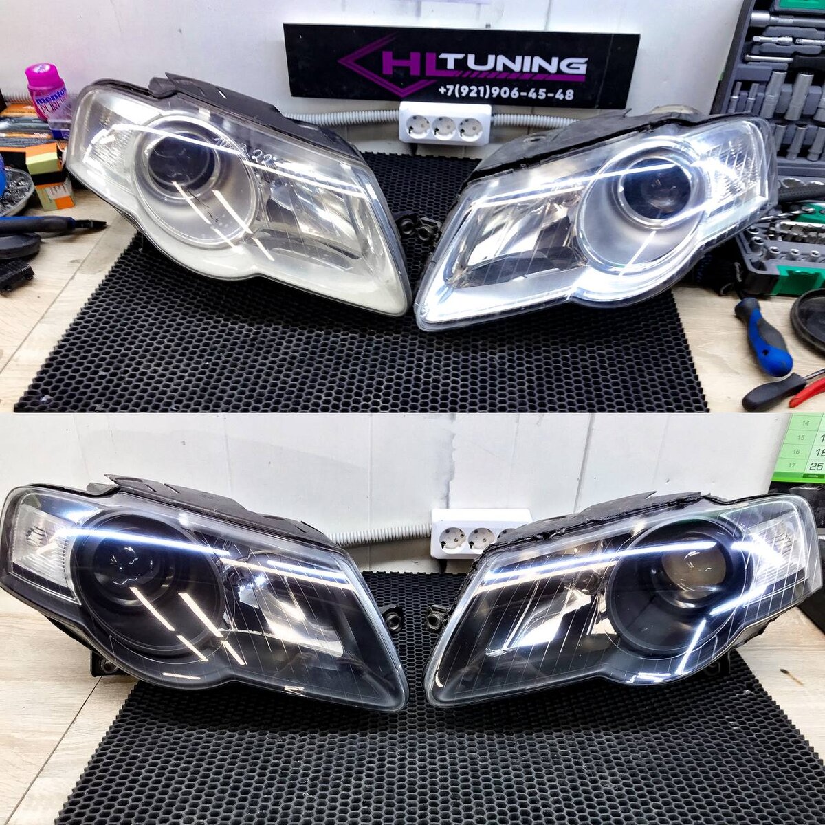 Добрый день, друзья! Владелец авто - Наш постоянный клиент. Полтора года назад устанавливал у нас линзы в фары 💪🏻 В этот раз причиной обращения к нам послужило ДТП 😔 - было принято решение переставить внутренности разбитой фары в другую фару б/у ➕ Дополнительные работы: - пайка стекла - покраска масок в черный цвет [ Всегда с Вами на связи ]