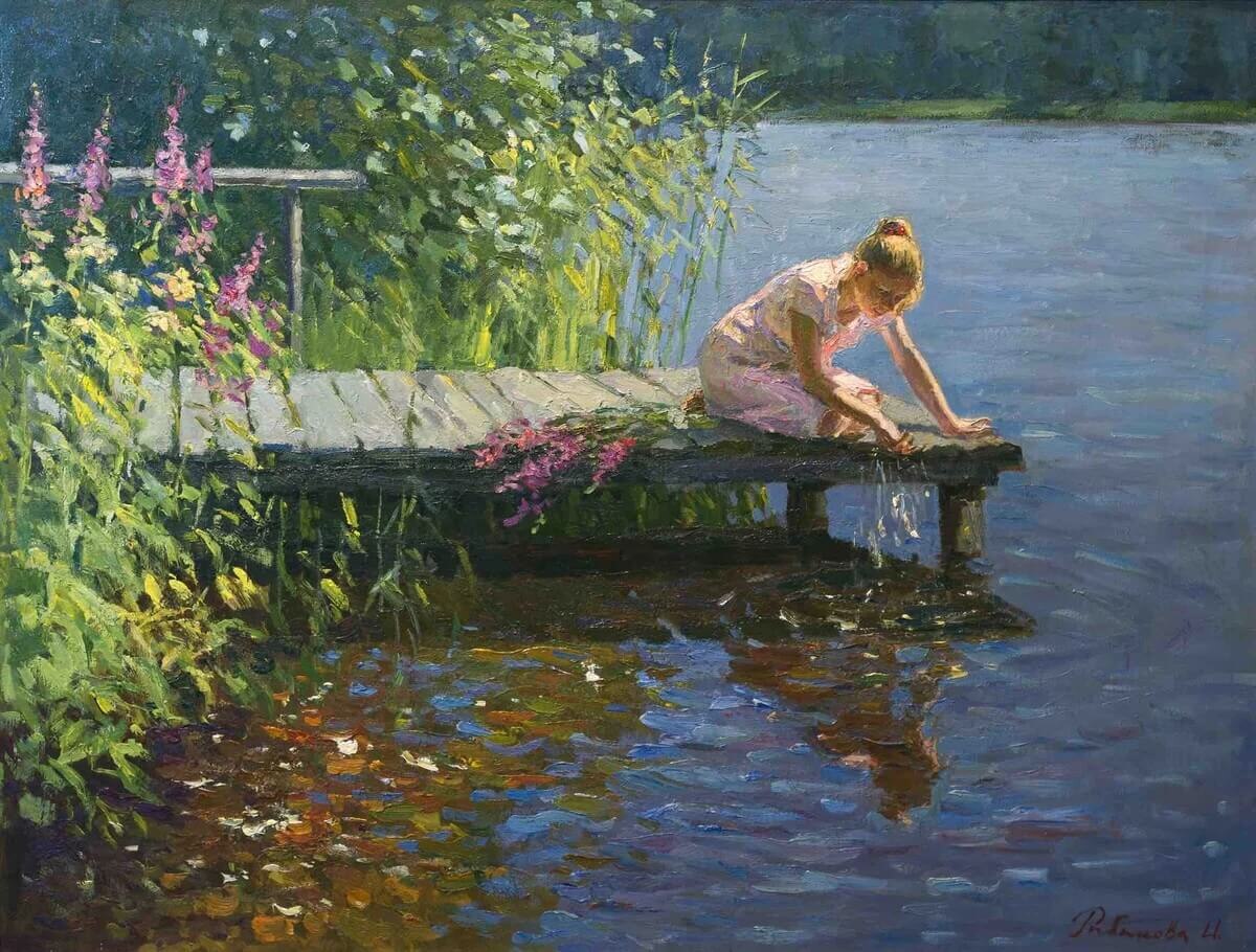 Рыбакова прославилась своими неповторимыми художественными работами в 1991 году, когда ее приняли в Союз Художников. В 2008 году Ирина стала лауреатом национальной премии в области современного изобразительного и декоративного искусства «Русская галерея XXI век». Ирина часто принимает участие во всевозможных художественных выставках и конкурсах, занимая почетные первые места. В основном Рыбакова занимается рисованием пейзажей, они у нее отлично получаются. Ирина Рыбакова родилась и выросла в сельской местности, поэтому на своих картинах, женщина старается изобразить моменты из прошлого, деревню, русские березки, цветы на деревянном окне, поле с цветами #арт #художник #картины художников #изобразительное искусство #живопись