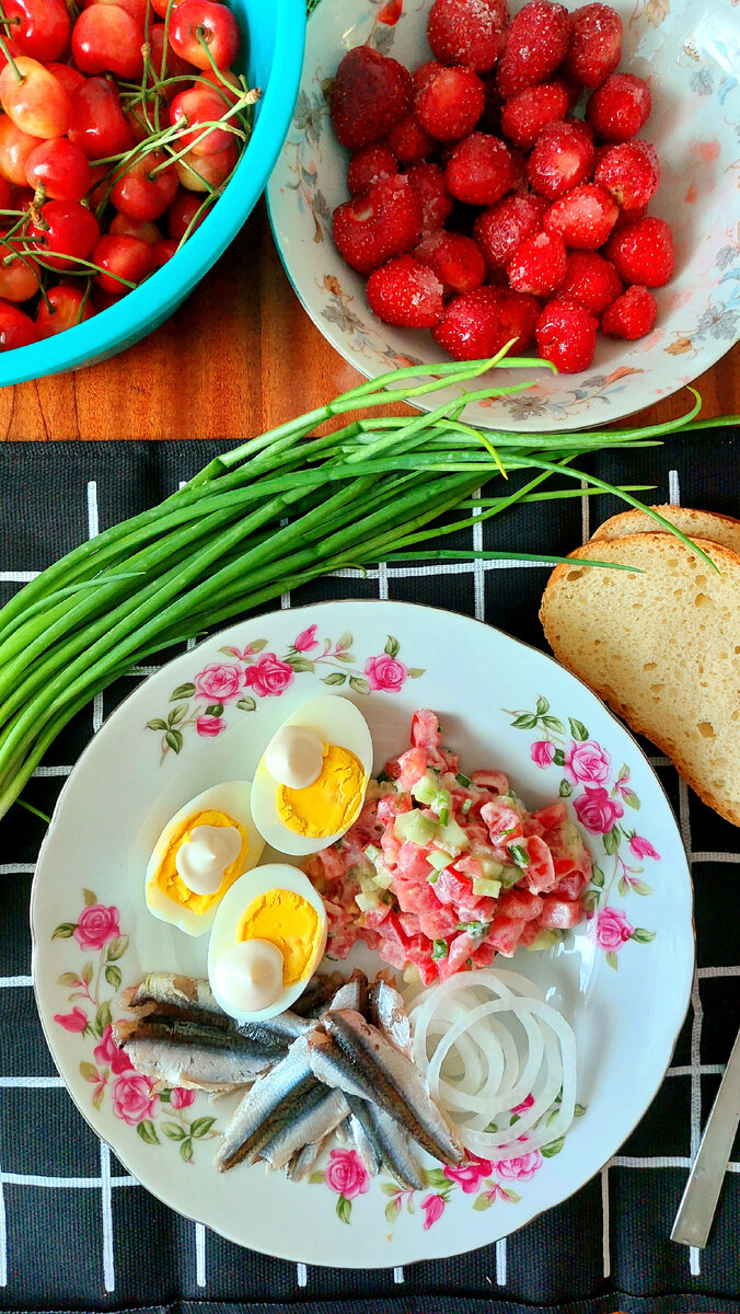 Боул - это такая круглая Тарелка, где собраны различные закуски. Подаётся каждому едоку и собирается по вкусу. Мы люди простые, про боул никогда не слышали и называли сие просто - закуска или заедки. Вот, типичное, крымское наполнение тарелки. Филе малосольной хамсы, с оливковым маслом. Лук репчатый, маринованный. Яйца от домашних кур, с майонезом. Сальса овощная - огурец, помидор, зелёный лук, молодой чеснок, майонез. Хлеб. Наполняйте свои тарелки и приятного аппетита) #боул #закуски #заедки #боул по - крымски #кулинарные советы