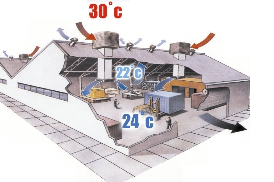 Охлаждение воздуха испарительного типа позволяет совместить различные характеристики систем вентиляции и кондиционирования воздуха, что позволяет эффективно использовать его для различных промышленных помещений.