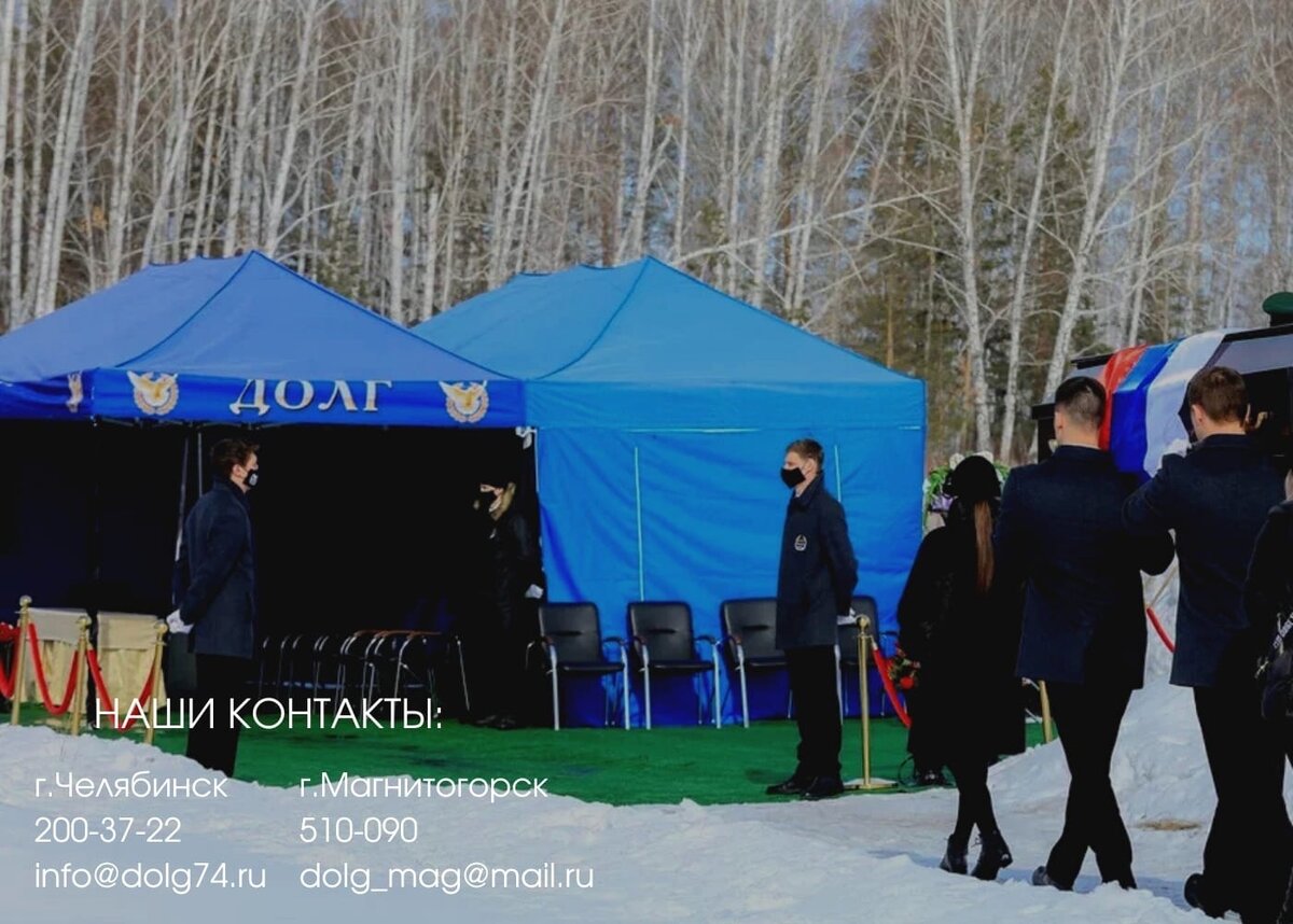 Завершение жизненного пути близкого человека отзывается болью в сердцах родственников и друзей. Шатер позволяет проститься с усопшим по достоинству, не взирая на погодные условия Шатер - это металлическая конструкция, обтянутая водонепроницаемой тканью. Благодаря этому дождь, снег, сильный ветер не смогут помешать церемонии прощания. Поскольку конструкция открытая, внутри не возникает парникового эффекта. Тент может может Быть оформлен ритуальной атрибутикой по желанию заказчика. Оформите заявку на услугу по телефонам: ☎ 8(351)200-37-22 Челябинск ☎ 8(351)510-090 Магнитогорск ✅ Бесплатная консультация 📍Круглосуточно мы свяжемся с вами в ближайшее время и ответим на все интересующие вопросы. #челябинск #магнитогорск #похоронныйвенок #кремация #похороны #спецоперация #ритуальныеуслуги #похоронныйбизнес #украина