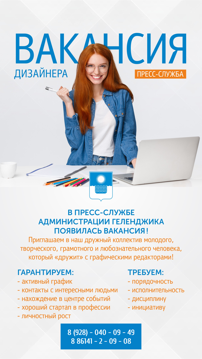 Дружная команда пресс-службы администрации Геленджика приглашает в свои ряды человека с нестандартным складом ума и большим желанием работать.