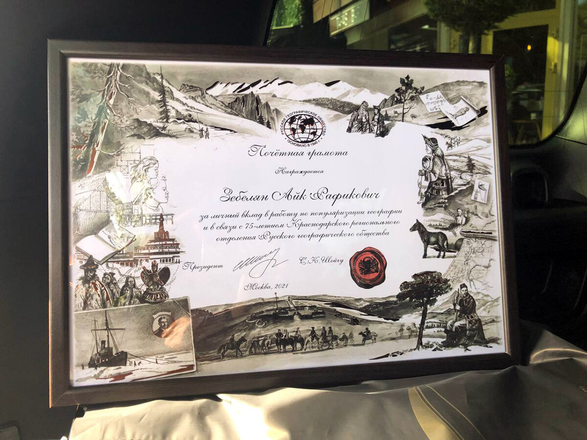 Руководителю группы компаний AR GROUPАйку Зебеляну вручена грамота Русского географического общества – за личный вклад в работу по популяризации географии и в связи с 75-летием Краснодарского регионального отделения Русского географического общества. Почетная грамота подписана президентом организации Сергеем Шойгу. – С удовольствием сотрудничаем с Русским географическим обществом, в том числе с его Краснодарским региональным отделением. Эта уважаемая организация вносит существенный вклад в консолидацию общества и решение важных социальных задач. Благодарен за оказанную честь быть полезным и причастным к деятельности Русского географического общества, –сказал руководитель группы компаний AR GROUPАйк Зебелян. #Зебелян #Айк Зебелян #Айк Рафикович Зебелян #Aik Zebelyan #AR GROUP #РГО #Русское географическое общество #Шойгу #Сергей Шойгу #награда
