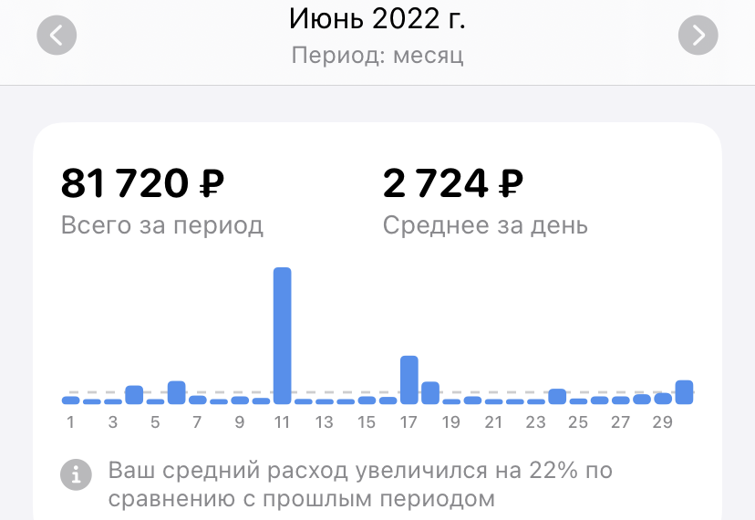 Затратный месяц получился) Расход увеличился на 22%