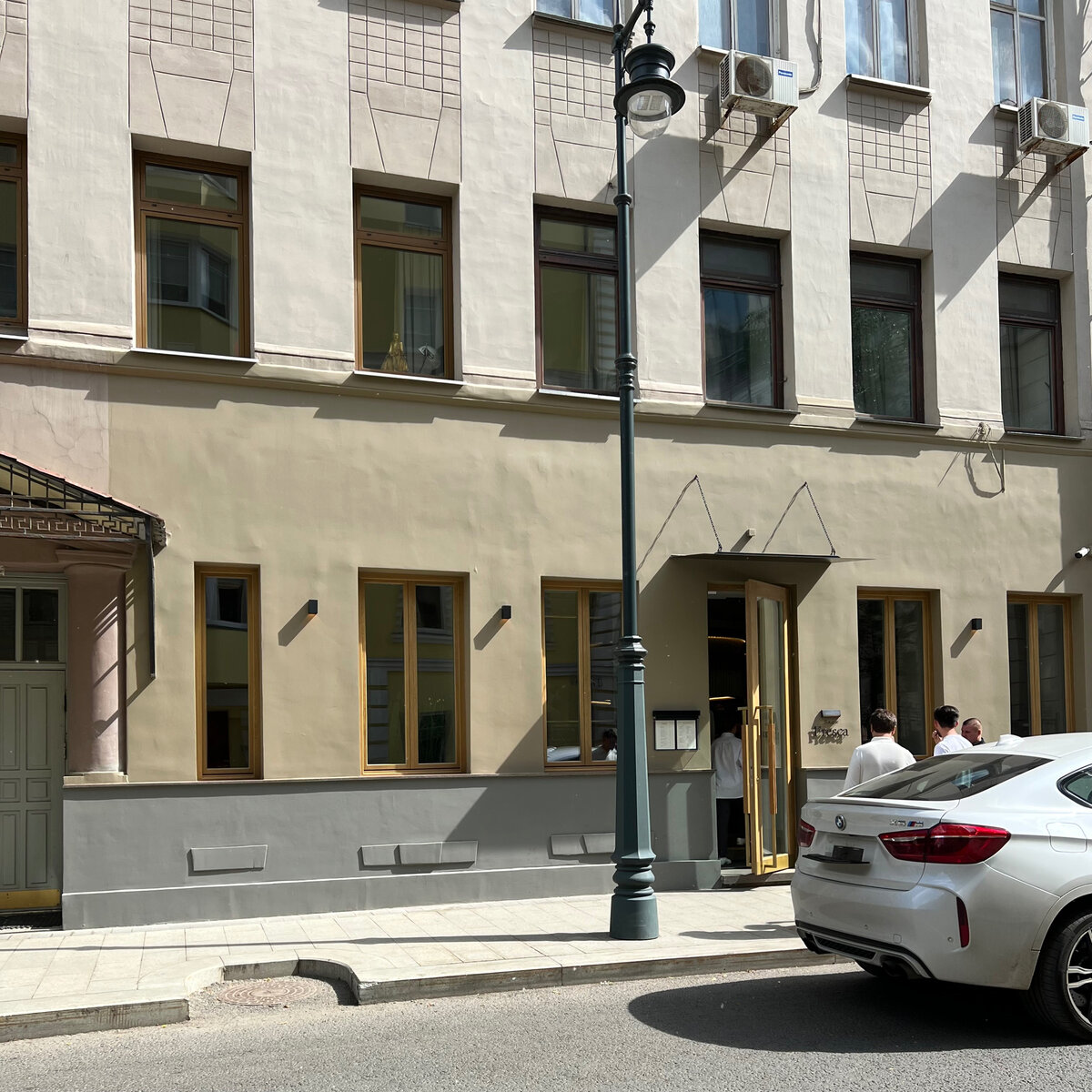 Новый ресторан «Свежая кровь», она же Sangre Fresca. В родителях – всемогущий и вездесущий австралиец и москвич Глен Баллис (так и хочется добавить «-ович»), товарищи из петербургского бара El Copitas, те самые, что уже насобирали в свое лукошко кучу призов и вымпелов, рупор местной гастрономии Александр Сысоев и гастро-обозреватель, а теперь еще и ресторатор Ян Черепанов. Локация околопрудная, в нескольких шагах от Патриарших, хотя именно Ермолаевский переулок до фантазий разных агентов по продаже недвижимости считался частью этого модного нынче района (наряду с Малой Бронной, Большим и Малым Патриаршими переулками). Помещение – закрывшийся якобы на перезапуск вегетарианский Fresh. Первый день официального открытия. До этого заведение работало несколько недель в тихом техническом режиме с частными приглашениями для всех важных и не очень обозревателей. Теперь белый зал доступен для всех, включая вашего покорного слугу. Фасад простой, незаметный, окрашенный в нейтральные природные тона без какой-либо уловимой яркости. Если шагаешь мимо и не вглядываешься, то можно пропустить.