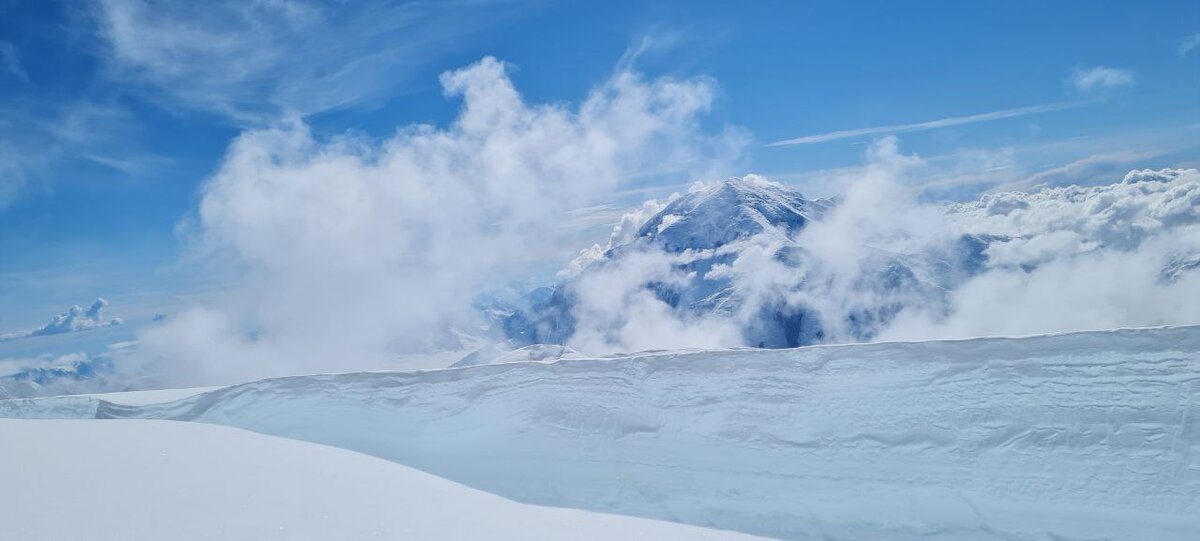 Если описать экспедицию на Аляску в нескольких словах, то это приключение в королевство вечного снега и льда. Приключение начинается в маленьком городке под названием Талкитна. Стоит сразу упомянуть, что на протяжении всей экспедиции нашей команде очень везло с погодой (за исключением 3-х последних дней, но об этом позже). Так сразу после собеседования с рейнджерами, нам удалось вылететь на ледник. Лететь приблизительно 30–45 минут, виды открываются просто потрясающие (если, конечно, вы не боитесь маленьких самолётов так же, как я). Прилетев на ледник, мы разбили лагерь, спрятали немного газа и еды к нашему возвращению, загрузили сани и стали готовиться к утреннем выходу. Переход с аэродрома в первый лагерь является самым длинным по дистанции (приблизительно 10км), но с минимальным набором высоты (250-300м). Переход был непростой, солнце жарило во всю мощь, снег превратился в кашу, на ногах неосвоенные ещё снегоступы, за спиной сани и рюкзак. В целом, все были рады оказаться в 1-м лаге