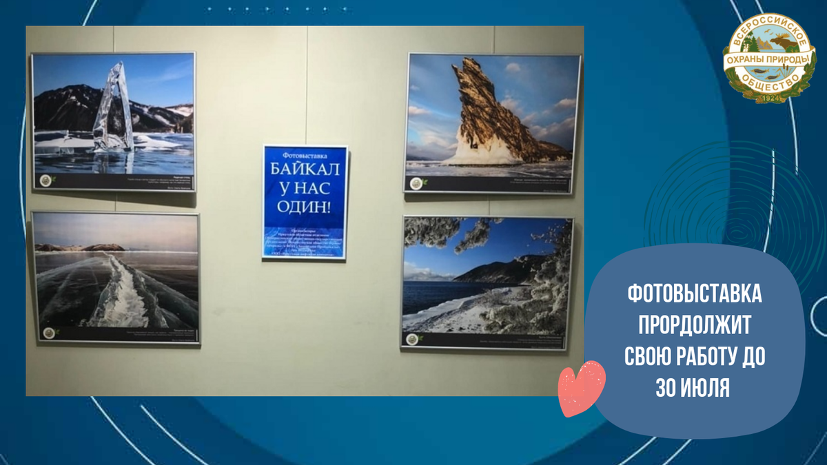 В Усть-Куте Иркутской области открылась фотовыставка «Байкал у нас один», инициаторами которой выступают Иркутское областное отделение Всероссийского общества охраны природы и ФГБУ «Заповедное Прибайкалье». Экспозиция открыта в рамках реализации в городе эколого-просветительского проекта «Экспедиция «Северный маршрут». «Впечатляющие фотографии с изображением пейзажей озера Байкал, его флоры и фауны уже побывали в выставочных залах многих городов Иркутской области. И вот теперь на эти работы могут посмотреть и жители нашего города. Каждая работа представляет особую ценность. Ведь фотография – это прекрасный способ показать красоту заповедных мест и донести идеи охраны окружающей среды до самой широкой аудитории», – сообщают средства массовой информации Усть-Кута. Передвижная фотовыставка продолжит свою работу до 30 июля. Вход бесплатный. Все фотографии после закрытия экспозиции останутся в фондах Усть-Кутского исторического музея – это подарок Усть-Куту от Иркутского областного отделе