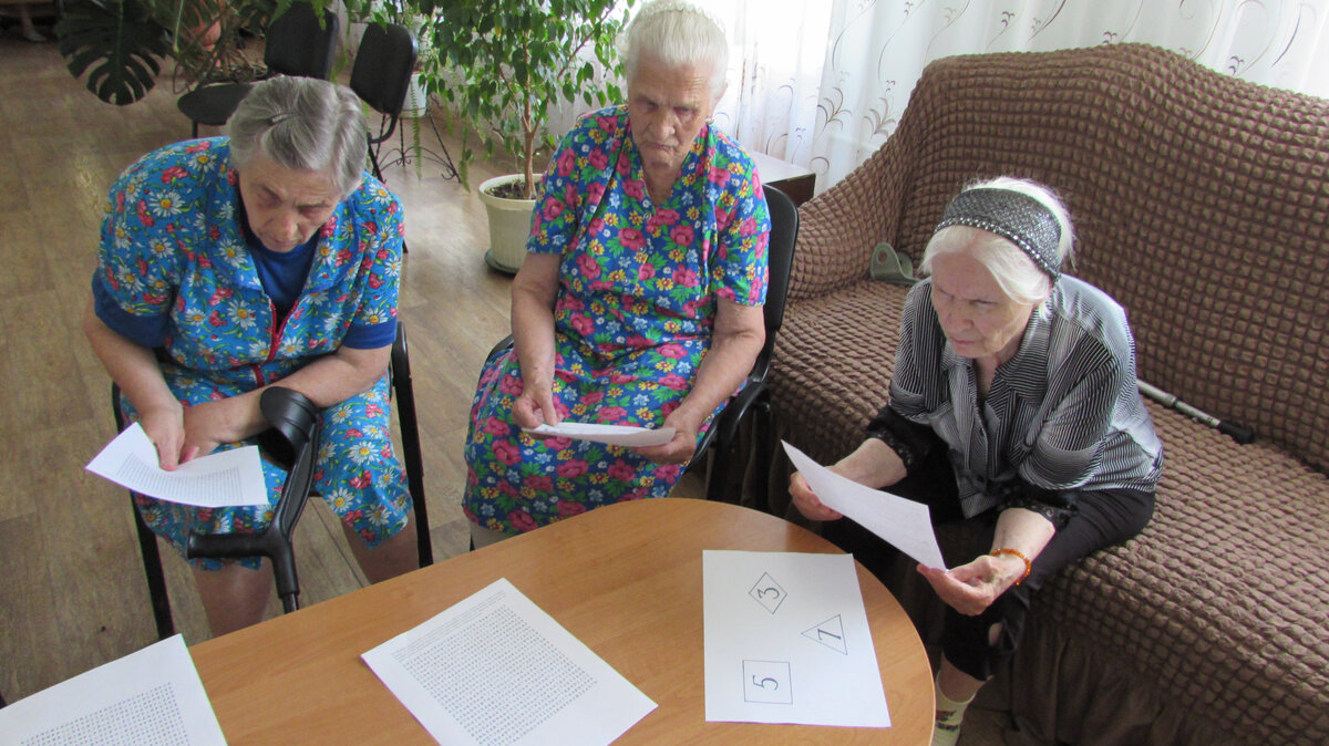 С возрастом человек не утрачивает интерес к играм. Просто они становятся другими, и их значение для человека тоже разное. Некоторые играют, чтобы занять свободное время, другим нравится в игре познавать себя, проверять себя на знания и умения. Многие через игру решают свои психологические проблемы, которые с возрастом все больше и больше накапливаются. 29 июня, в социально-реабилитационных отделениях психологом было проведено занятие «Логические игры и головоломки». Эти упражнения направлены на тренировку внимания и памяти пожилых людей, которые с интересом выполняли предложенные задания и неплохо с ними справлялись.