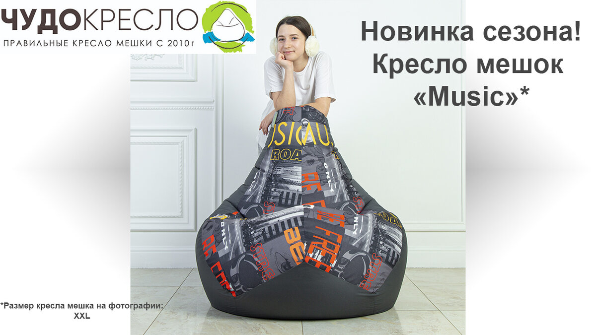 Встречайте: кресло мешок с принтом "Music". Эффектный арт, в сочетании со строгой, цвета графита, тканью, создаст яркое акцентное пятно в вашем интерьере!