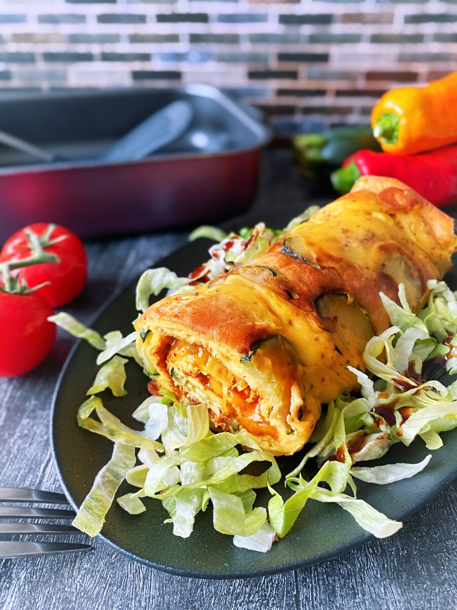 Одна из наших любимых рубрик - завтрак выходного дня! ⠀Когда вы не спеша, с наслаждением можете позволить себе приготовить шикарный завтрак и, не торопясь, его съесть. ⠀Противень 19х25 из линейки Violet смазываем ⠀Небольшим количеством растительного масла и застилаем бумагой для выпечки. В действительности любая выпечка и другие блюда никогда не «прилипают» к нашему антипригарному покрытию, но в данный момент бумага нам понадобится для того, чтобы впоследствии омлет было легко свернуть в красивый рулет. ⠀Итак, возьмём несколько тонких кружков кабачков цукини, немного тонко нарезанного болгарского перца, выложим на бумагу для выпечки (Кстати, если после вчерашнего ужина у вас осталось немного жареных овощей, то они как раз подойдут!). ⠀Приготовим омлет: возьмём три яйца, 100 мл сливок 15 % жирности, и одну столовую ложку с горкой муки. ⠀Добавим соль, прованские травы и любые специи по вашему вкусу. Мы добавили немного молотого мускатного ореха. Хорошо взбиваем всё миксером, выливаем н