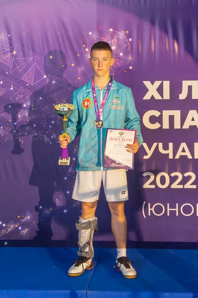 — «Перед началом Спартакиады я ставил себе целью попадание в четверку. И я удивился своим возможностям, своим силам, когда вышел в финал. Это говорит о том, что я не зря тренировался на протяжении долгого времени. У нас два месяца были сборы, и работа, которую мы на них проделали, вылилась в этот результат. Конечно, очень приятно было стать серебряным призером. Сложнее всего на этом турнире мне было играть в матче 1/8 финала мужского парного разряда, где мы с Матвеем Карповым встречались с Алексеем Заевым и Никитой Борисовым, а также в финале одиночки против Ильмира Хайрутдинова. В финале я проиграл из-за того, что уступаю Ильмиру в физике, у меня недостаточно прокачана взрывная сила ног, которая нужна для более быстрого выхода на волан. Я выбрал рискованный стиль игры на этот матч, потому что в одиночном разряде по-другому никак. Нужно много рисковать, чтобы набирать очки, особенно против такого соперника, как Ильмир. В финале я несколько растерялся, потерял концентрацию где-то, что привело к большому количеству ошибок и попаданий в аут. И общая физическая усталость тоже сказалась. Конечно, трудно такие долгие турниры играть. На тренировках мы прорабатываем этот аспект, работаем час без остановок, чтобы быть готовыми к длительным физическим нагрузкам, чтобы сохранять нужную скорость все несколько дней соревнований. На этой Спартакиаде у меня была максимальная поддержка от всей команды, от родных и друзей. От этого, конечно, испытываешь только радость и восхищение, это очень приятно».