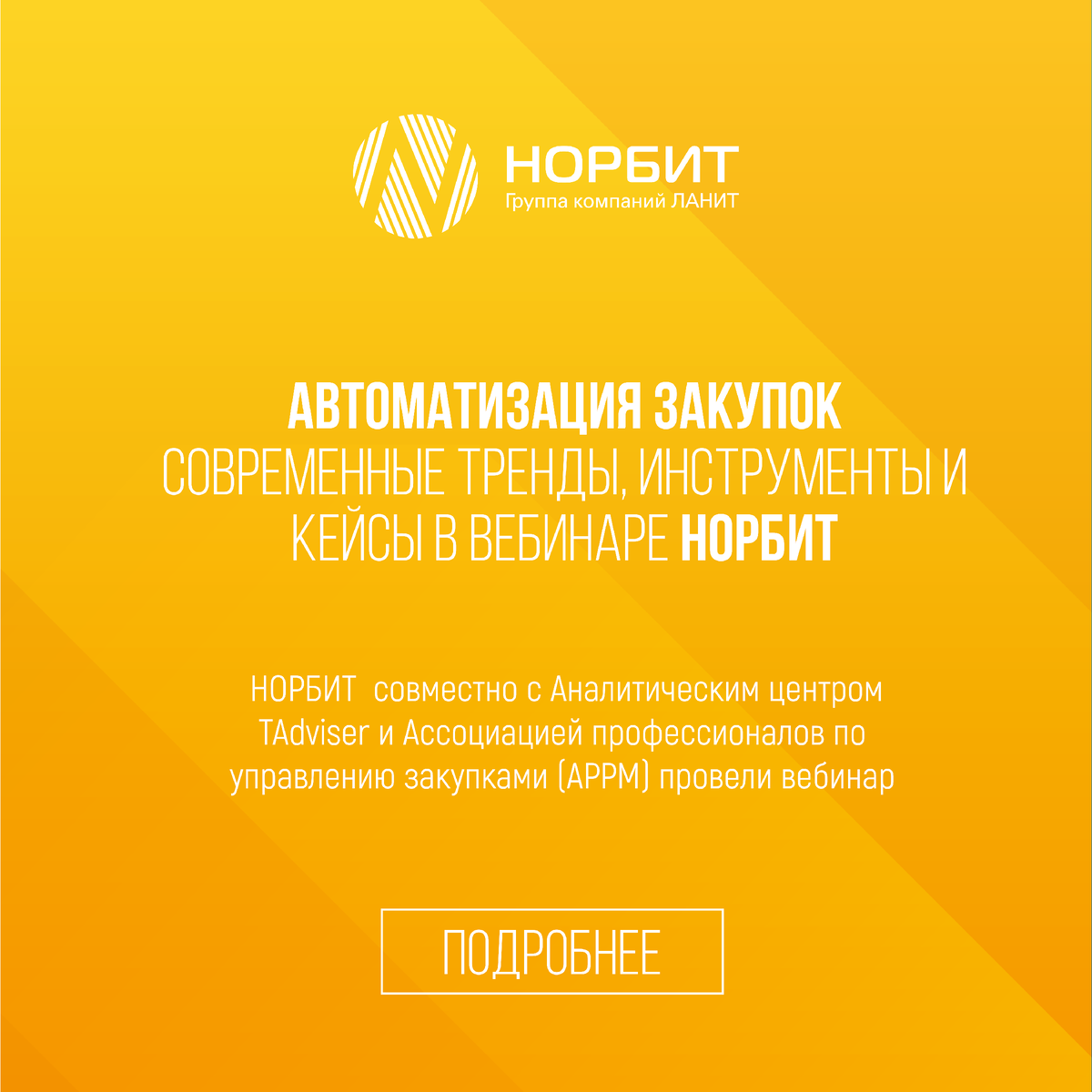 НОРБИТ (входит в группу ЛАНИТ) совместно с Аналитическим центром TAdviser и Ассоциацией профессионалов по управлению закупками (APPM) провели вебинар, посвященный ежегодному исследованию российского рынка автоматизации закупочной деятельности в коммерческих организациях. Участники обсудили главные итоги исследования и ключевые тренды в сфере закупок. А также остановились на изменениях, которые произошли в отрасли за последние несколько месяцев, мировых трендах и их воплощении в современных российских реалиях. В дискуссии принимали участие директора по закупкам крупных коммерческих и государственных компаний из разных отраслей, IT-специалисты, а также независимые отраслевые эксперты. Они обменялись мнениями о том, как меняются запросы бизнеса и какими должны быть эффективные IT-инструменты, способные решить задачи нового времени.