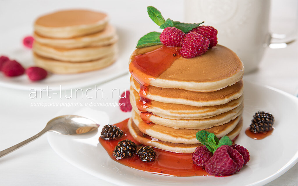 Панкейки Ингредиенты: молоко 210 г (мл) яйцо 1 шт. мука 200 г разрыхлитель 5 г (1 ч. ложка) масло растительное 25 г (2 ст. ложки) сахар 30 г (2 ст. ложки) соль 1/2 ч. ложки Способ приготовления: В ёмкость разбить яйцо, добавить сахар и соль, можно добавить ванильный сахар. Перемешать до однородной массы. Добавить молоко Налить растительное масло, хорошо перемешиваем. В отдельную ёмкость просеять муку и добавить разрыхлитель, можно просеять корицу и перемешиваем все венчиком. Добавить муку с разрыхлителем в тесто. Перемешать до однородности и нужно действовать быстрее,чтобы панкейки получились не резиновые. Выпекать панкейки следует сразу. Печем на сковороде без масла. Желательно брать сковороду без рельефов. Ставим на средний огонь. Наливаем тесто, лить нужно в центр блинчика. Я беру сразу черпаком и лью столько теста сколько нужно на один панкейк. Переворачиваем наш блинчик, когда появятся пузырьки. Выпекаем до румяного цвета. Проверить готовность панкейков можно разломив один и если