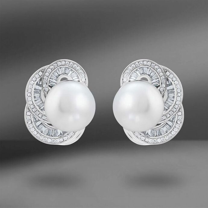 Жемчуг – самая древняя драгоценность на нашей планете, которую дают нам не недра Земли, а живые организмы – морские и речные моллюски, и единственный драгоценный камень, который не требует дополнительной обработки. Цвет жемчужин варьирует от белого и молочного до розового и голубого, а также от серого и серебристого до темно-фиолетового, зеленовато-черного и черного с металлическим блеском. При этом классический цвет, с которым ассоциируется жемчуг – белый. Украшения с белым жемчугом невероятно универсальны и подходят к любому наряду. «Жемчуг – всегда прав», − сказала легендарная законодательница моды и новатор Габриэль Коко Шанель и бескомпромиссно ввела моду на украшения с жемчугом, которые по-прежнему актуальны. Салон «Emporium Gold» предлагает подборку из трех пар элегантных серег с жемчугом, которые добавят образу непревзойденную утонченность и шик. Золотые серьги с бриллиантами и жемчугом (2 фото) Дизайн представленных серег выполнен в виде трех завитков, похожих на раковину молл