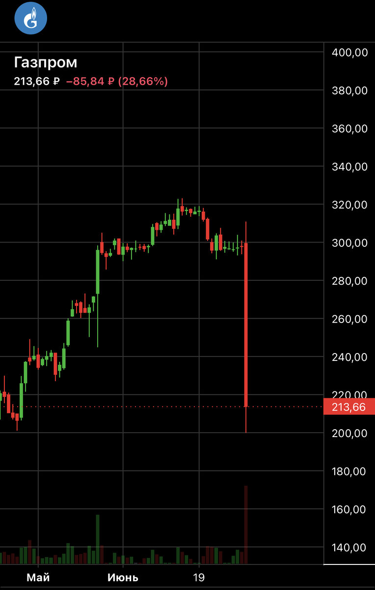 Акции «Газпрома» обвалились на 30% после отказа от выплаты дивидендов🔻