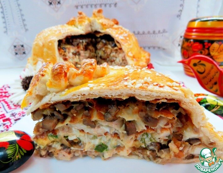 Рецепт действительно хорош, тесто получается очень мягким и вкусным, начинка за счет добавления сметанно-горчичного соуса и сыра сочнейшая. Когда в первый раз готовила, то думала, что с сыром будет перебор и так в начинке много всего. Но с сыром курник оказался сочнее и вкуснее, кроме того пирог удобнее кушать, так как благодаря сыру слои хорошо держатся между собой. Попробуйте и Вы этот вариант, уверена, что и Вам он придется по вкусу.