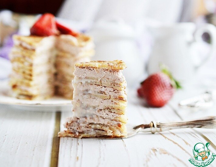 Рецепт «Блинный торт с творогом и сгущенкой»: