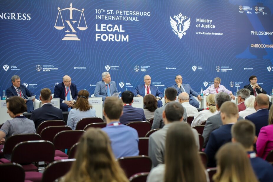 Председатель СК России А.И. Бастрыкин выступил в заседании секции «Философия и право» X Петербургского международного юридического форума. В мероприятии, модератором которого стал директор Института государства и права Российской академии наук А.Н. Савенков, также приняли участие сопредседатель Ассоциации юристов России, заслуженный юрист РФ В.Н. Плигин, судья Суда Евразийского экономического союза А.А. Федорцов, первый заместитель Председателя Верховного Суда Республики Беларусь научные сотрудники Института государства и права РАН В.В. Лапаева, И.И. Бутрим и А.В. Габов и другие ученые-правоведы, в том числе представляющие юридическую науку других государств. Также Председатель СК России посетил пленарное заседание форума, посвященное вопросам права в многополярном мире. В рамках мероприятия прозвучало приветствие Президента Российской Федерации В.В. Путина, отметившего значимость заявленной темы и необходимость развития системы права на основе общепризнанных принципов справедливости,